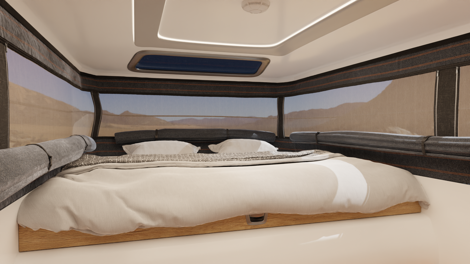 of Pickup truck camper which is equipped with useful features and latest camping hardware. Aside from usefulness it offers luxurious and comfortable staying inside the cabin which is appropriate for 4 people max, which was also very important so that potential of double cabin trucks can be fully taken advantage of.